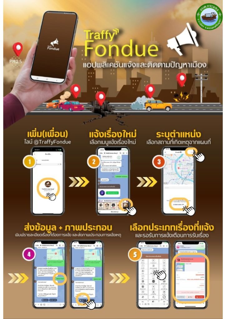🔸การเปิดการใช้งานแอพลิเคชั่น “Traffy Fondue” เจอ แจ้ง จบ พบปัญหา แจ้งได้ ง่ายนิดเดียว โดยมีขั้นตอนดังนี้